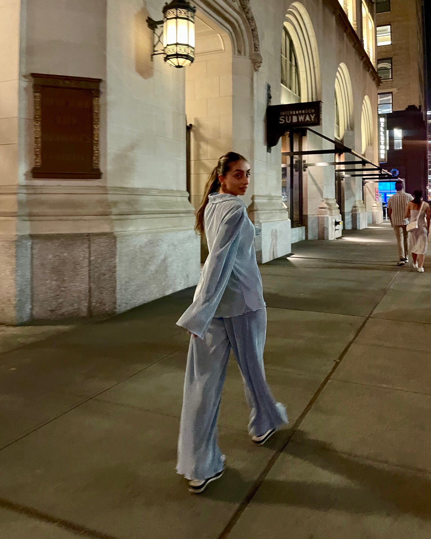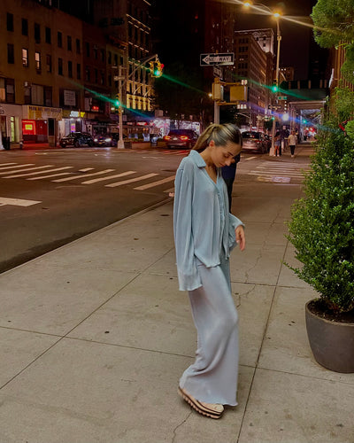 Now you can finally wear pajamas out and still manage to look chic! The Kiara set features a button down and wide leg pants with a lettuce-edge trim. Finished off with an elevated plisse and soft lightweight fabric.  It's relaxed enough to wear on a casual basis but also luxe enough to wear to a dressier event. Best of both worlds.